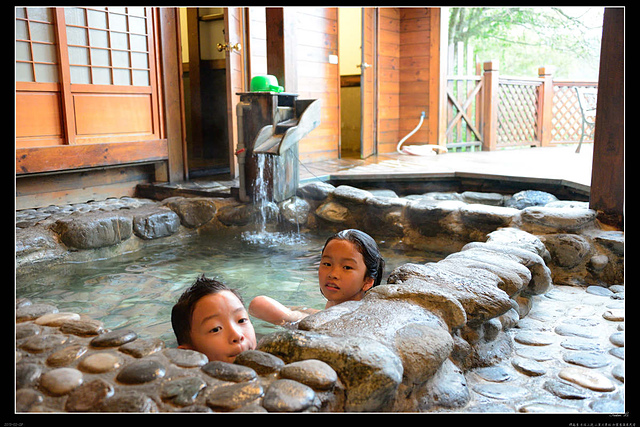我們雖然只有四個人,卻入住了六人房,好處是獨占了半露天溫泉浴池,自然是全裸上場囉!