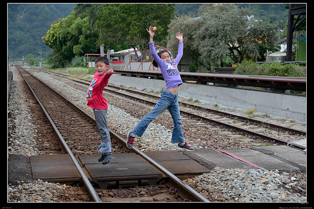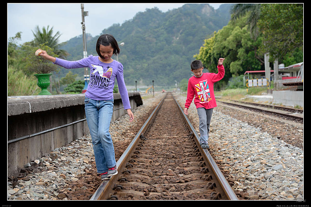 在鐵軌上行走是不對的行為哦....