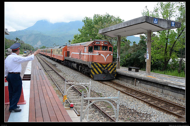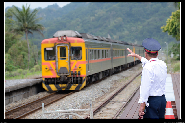 北上自強號經過,獨守山里車站的吳站長出來招招手......