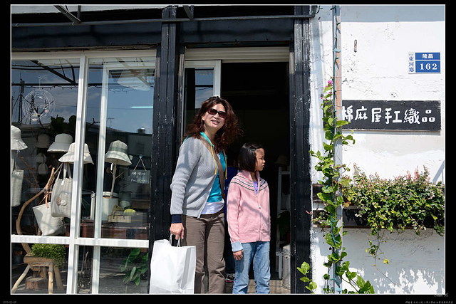造訪過的名人不少,也有很多藝人來沾沾光,老婆看上了一個黃麻包,店主楊小姐很客氣,又送了個墨綠色的皮製花當飾品!