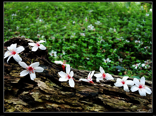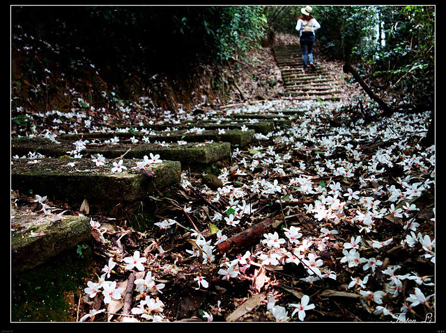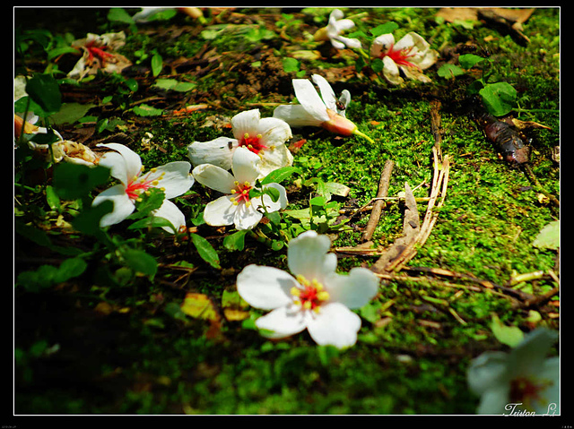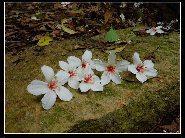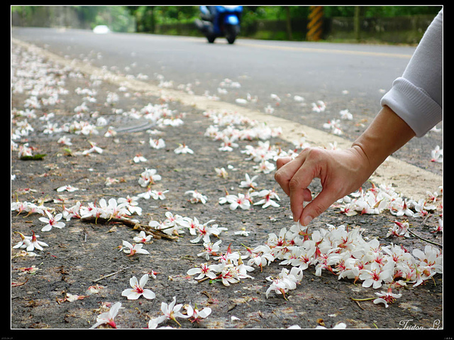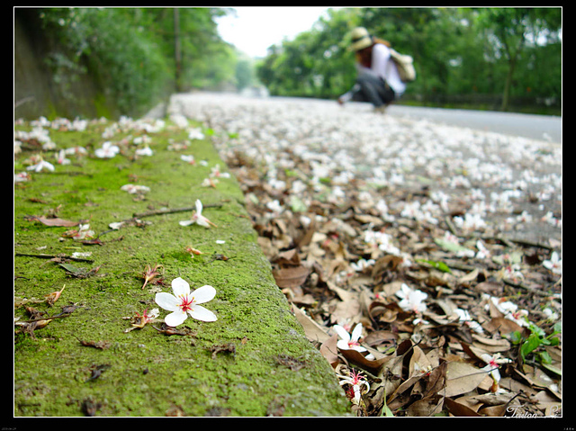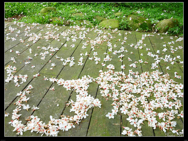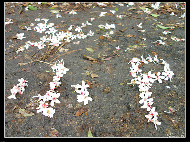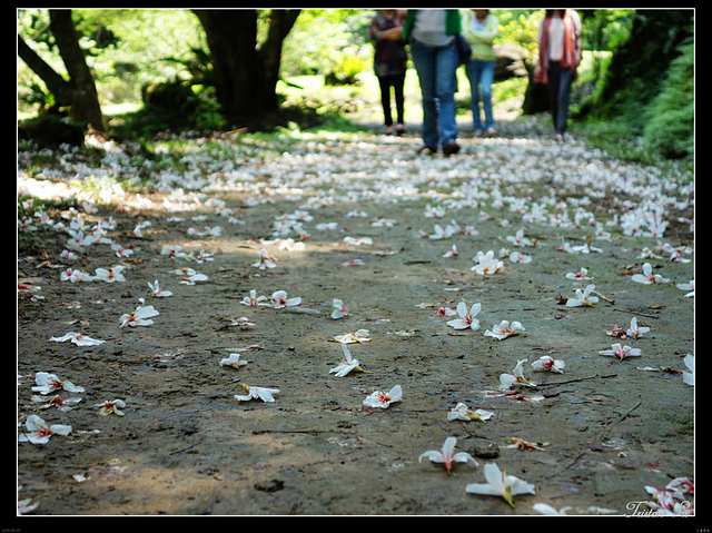 一朵朵小白花落英繽紛,第一次賞桐,時間雖然短促,但也已足矣!