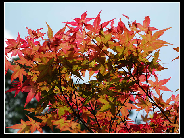 不知是本應如此,青楓紅槭在藍天映透光,山谷裡春風徐徐,眼裡心裡自是一片好顏色
