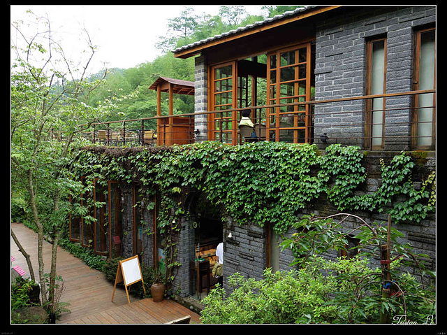 沿步道走到內,兩三幢被爬牆虎攀滿牆壁的屋子赫然出現,想來是餐廳了,卻沒有什麼油煙味