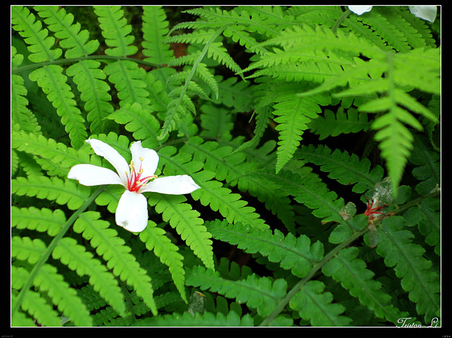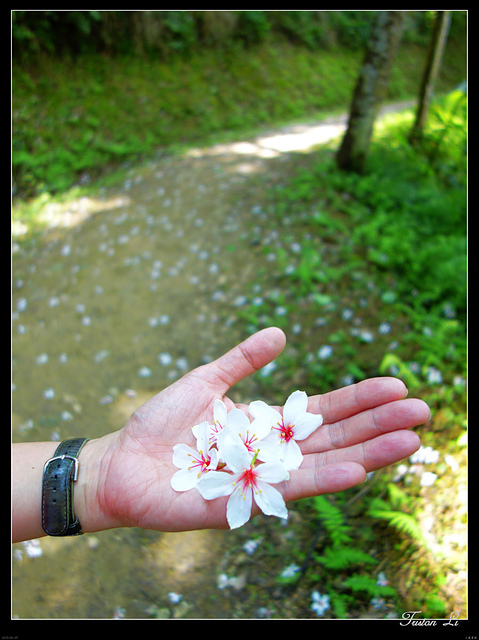 遠眺山區,綠意森林裡一叢叢白花,遠看成堆,近看成片,便是一朵朵也精緻