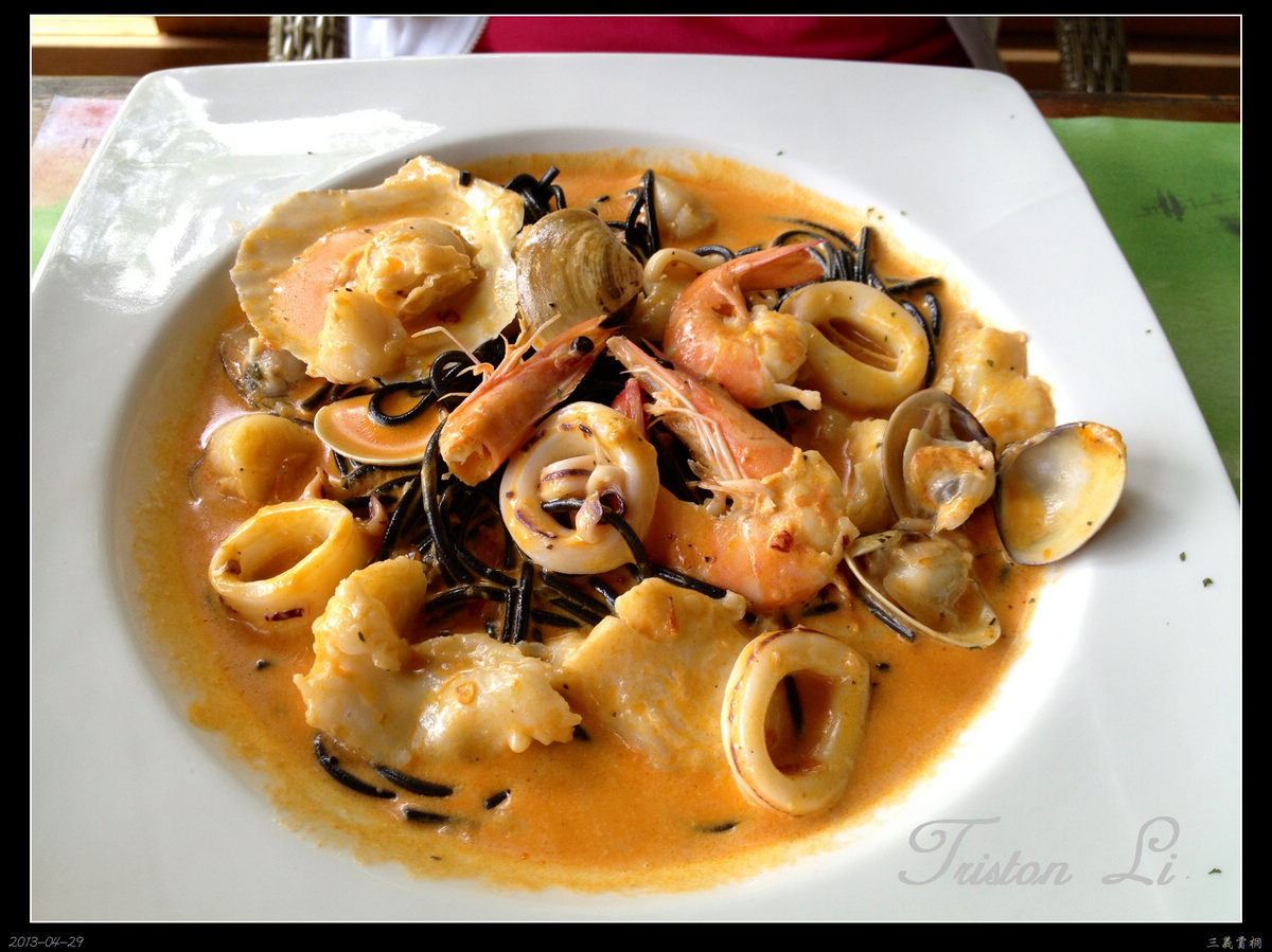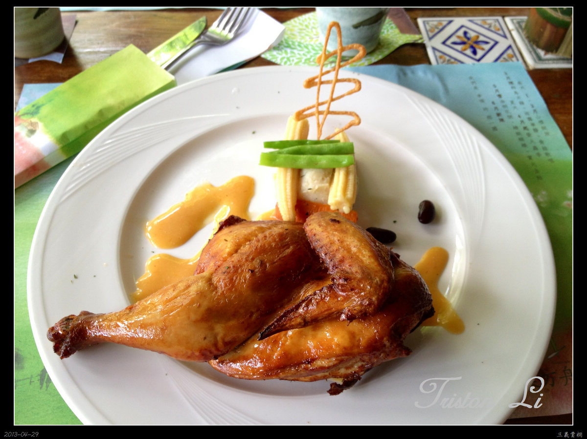 春風涼涼吹拂,入眼滿山綠意,和老婆享受一頓午餐,是件幸福的事。海鮮墨魚麵和烤春雞沾桔醬,比想像中的美味,在這樣的環境下,能被服務享用上這樣的美食,要感謝的人實在太多...