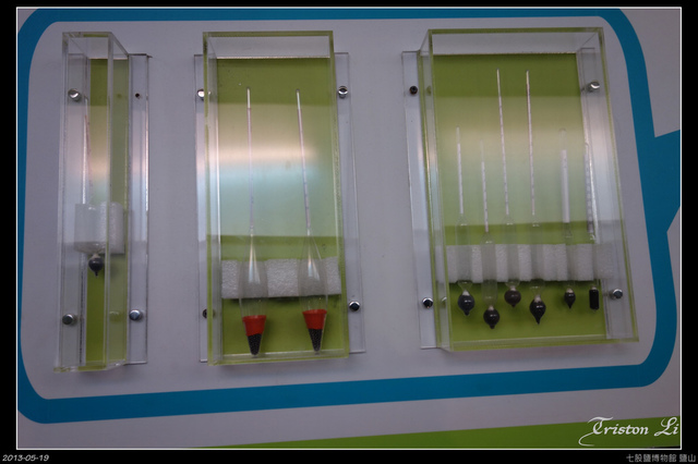 用來量鹽度的浮子,理論上是利用不同重量的浮子來量測不同鹽度所產生的鹽水密度