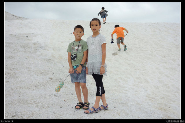 下了幾天雨,外頭的鹽山好像有比較乾淨一點!兒子女兒說要爬,就讓他們慢慢走上去囉!兒子今天有背望遠鏡,沒上去看看風景怎麼可以......