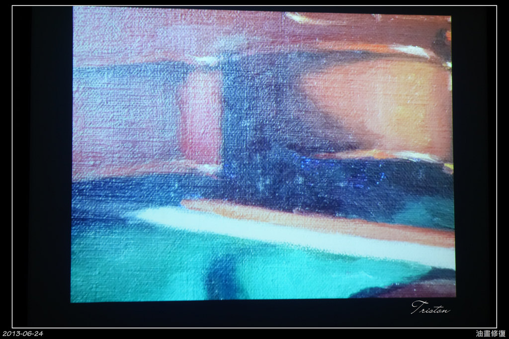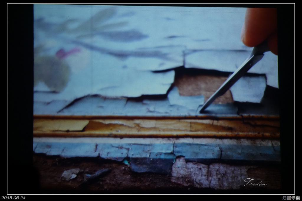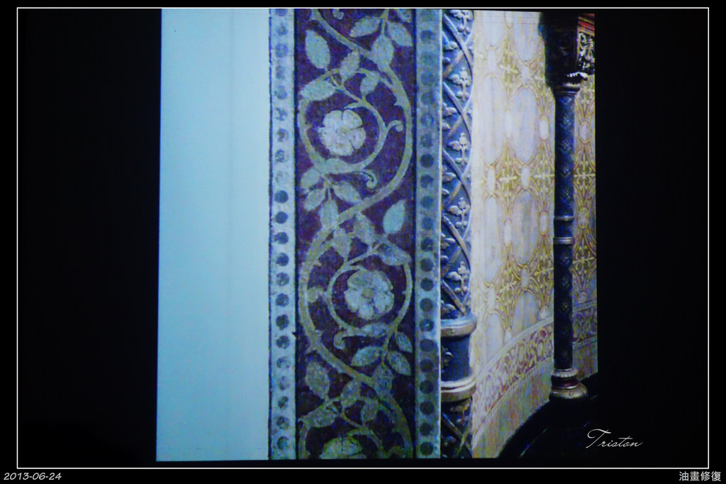 甚至用螢光分光顯微鏡去分析它的構成。蔡老師說,大師作品為了讓顏料表現出光線的折反射,往往要重複上七八道油墨,所以在修復時也要了解作者的技法和工作