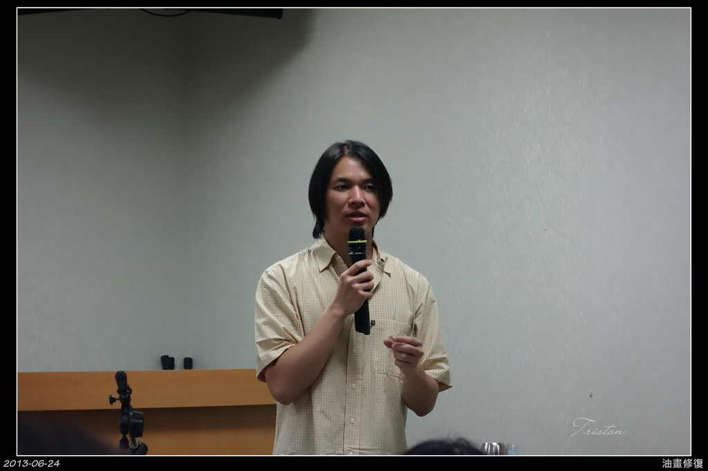 今天請油畫修復師蔡舜任來演講,蔡舜任老師在油畫修復界可說是赫赫有名!所以認真一點是一定要的...希望不會被告。我要寫個Mail請示一下原作者!!