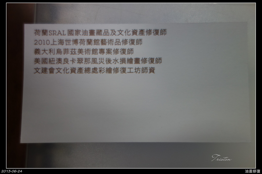 他算是公眾人物,拍他的名片應該不會被告吧!我的朋友中,如果家裡有油畫寶物要修復的好野人,可以找蔡老師哦!