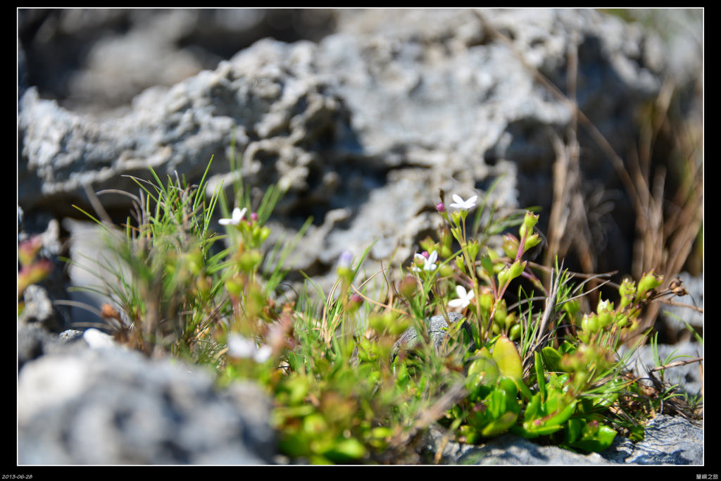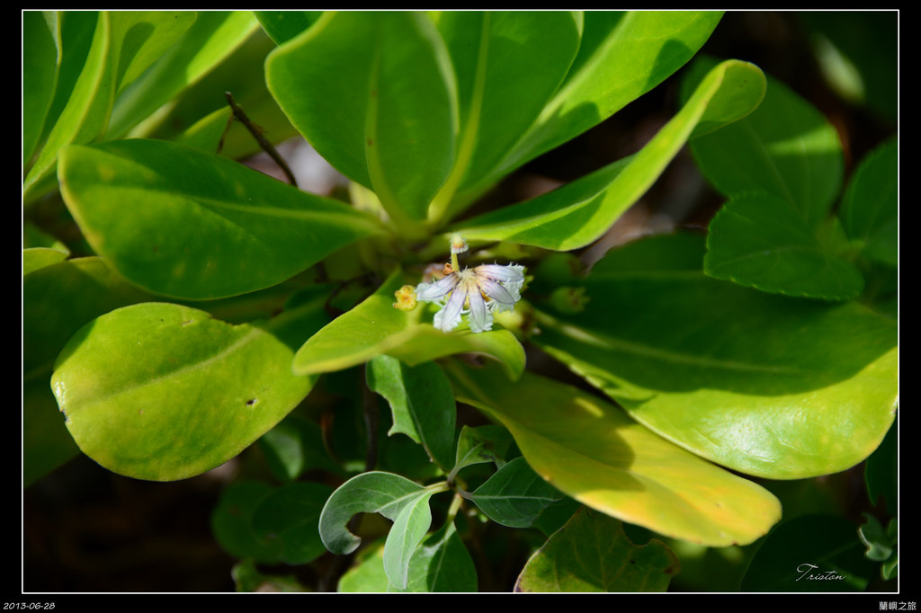 水芫花,歷盡風吹、雨打、日曬,還得抗拒強烈的鹽霧海風。匍匐狀的木質莖,錯綜複雜地盤繞在珊瑚礁上,似乎更表明了它的不屈不撓。