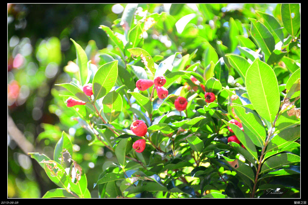 在中橫公路往氣象台的路旁看到一棵結滿果實如拇指大小的樹。當地人說這是蘭嶼蓮霧。張老師事後補充: