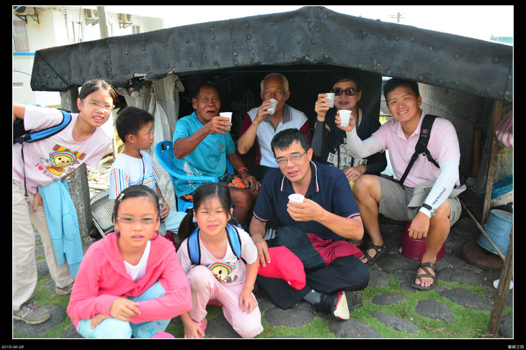 經過二個小時四十分鐘的擺盪,終於平安無事地抵達後壁湖漁港,風浪果真驚人,起起伏伏地都快被搖下椅子了,還是兒子厲害,安安穩穩地躺在第一排的橫椅上睡覺!