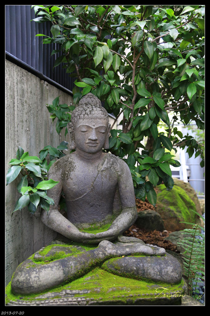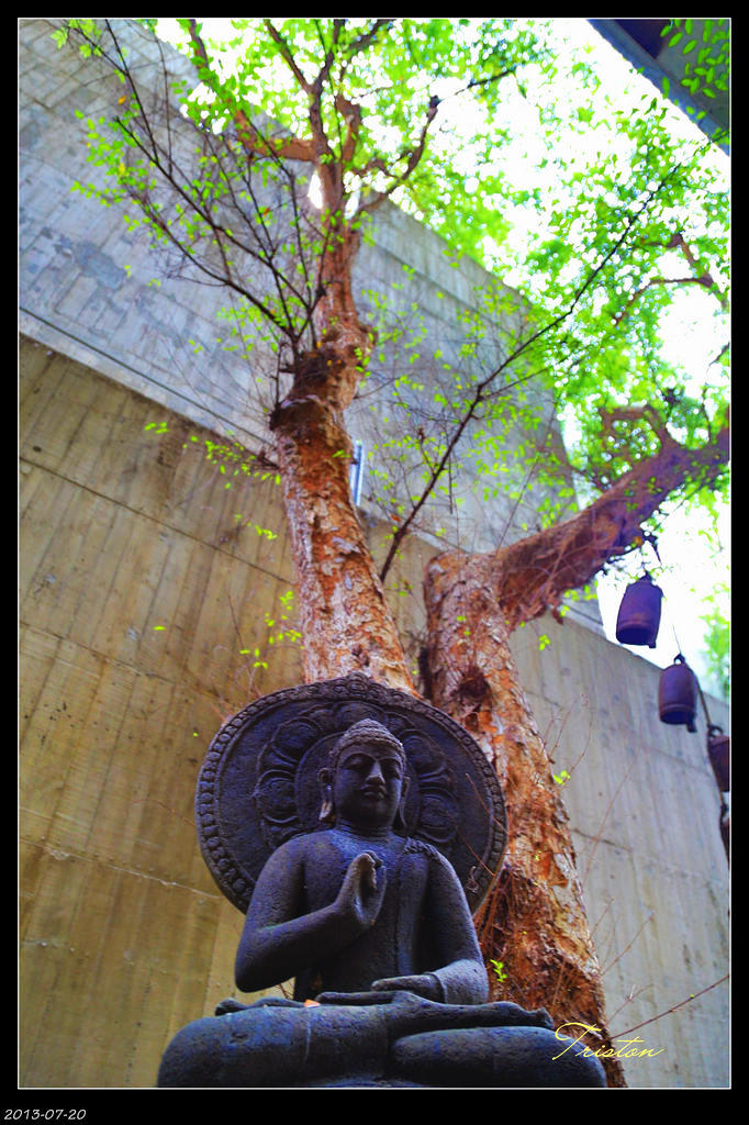 山門內一小蓮池,池畔佛祖莊嚴端坐,一池一佛,寧靜氣氛自成一須彌,便把牆外喧囂阻絕於外!