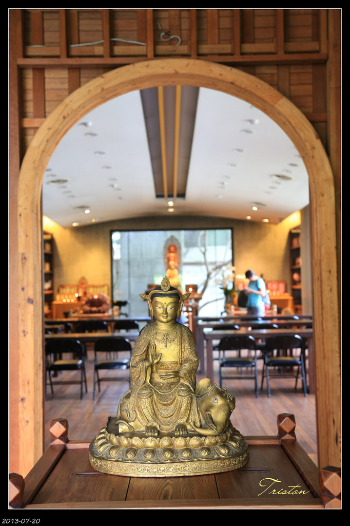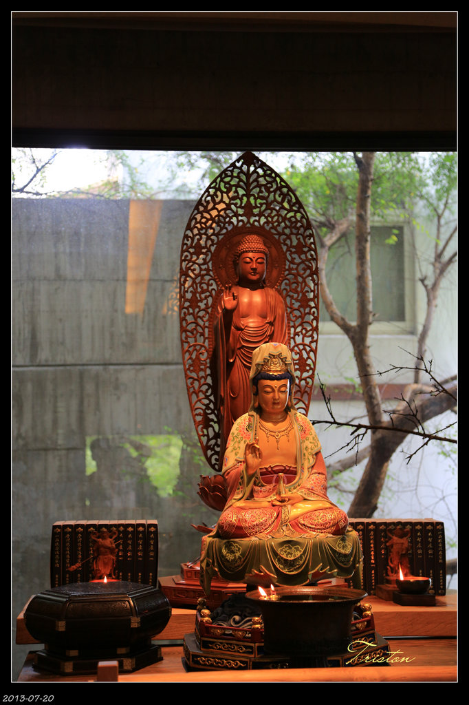 進入中間乃是菩薩學處,正對道場立著韋馱菩薩。韋馱菩薩是賢劫千佛之最後一位,佛發心保護前999佛成佛,摧毀邪魔外道幹擾。韋馱護法。在建築中通常面對着釋迦牟尼佛,表是護法。對道場而言,是保安司令;對修行人而言,是守護神。寺的外形雖然現代,仍有古意!