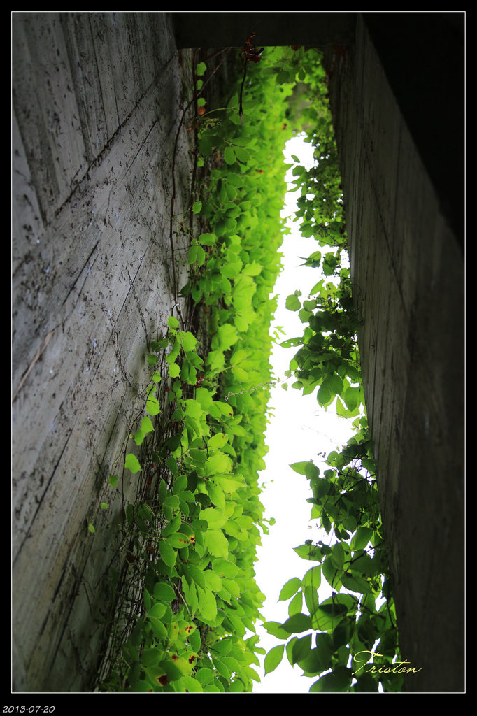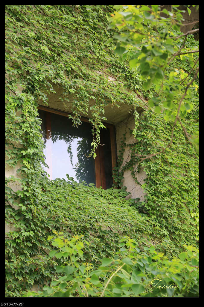 三樓小院,見佛端坐,院子邊有一小軒,未開放,想來是潛修閉關之處,窗外爬牆虎漫生
