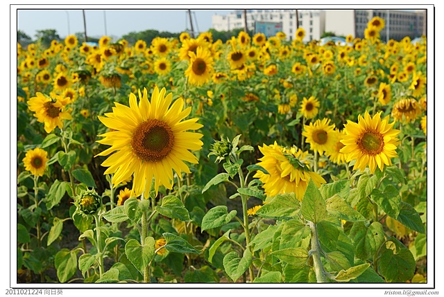 昨天經過台南市生產路附近台糖的農地,發現這裡的向日葵開了,今天下午趁空過來賞花!這一大塊地,每年元宵過後,就是向日葵的季節,不過台南市都市計劃中,未來的台南副都心座落在這裡,附近不但是新台南火車站的計劃區,也規劃了歌劇院和一些商業用地,再過幾年,這片都市中的花田就要bye bye囉!有花堪拍直須拍,就努力為短命的花兒留下最美麗的影像吧....